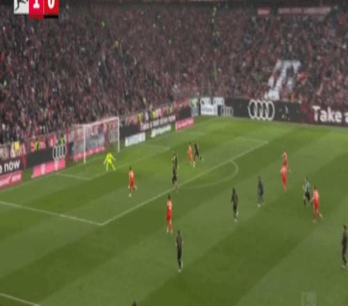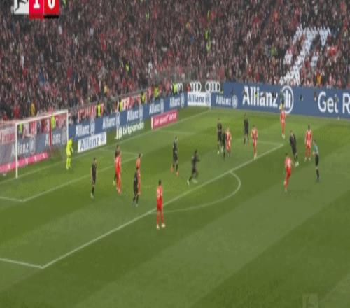 第81分钟,流畅配合,吉安努利斯倒三角,马森戈破门,奥格斯堡2-1拜仁