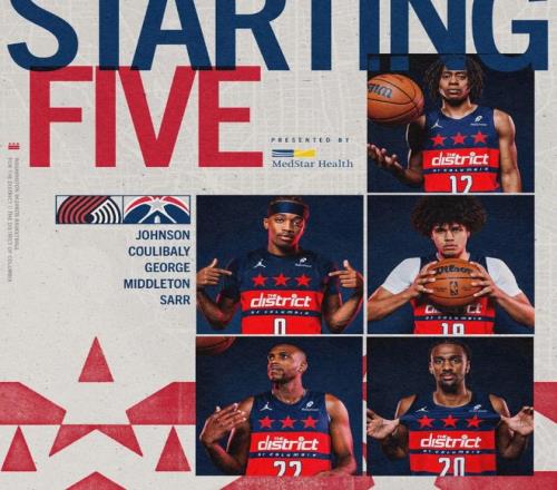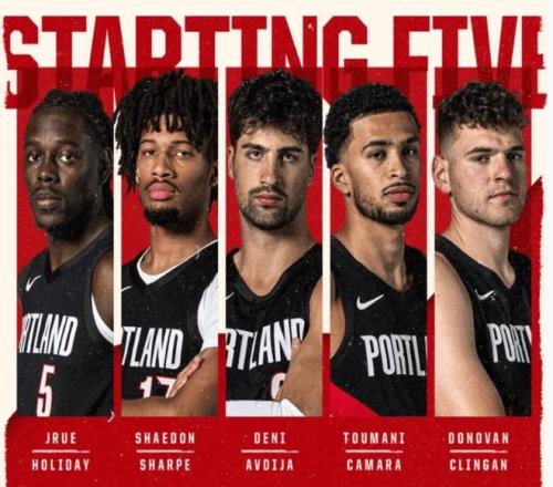 首发阵容方面,开拓者队这边,利拉德赛季报销,亨德森、穆雷、塞布尔等也缺阵,教练排出的最新首发五人组为:霍勒迪、夏普、阿夫迪亚、卡马拉、克林根;奇才队这边,特雷·杨和巴格利也不打,首发阵容则为:约翰逊、库利巴利、乔治、米德尔顿、萨尔。