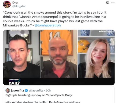ESPN的Marc J. Spears公开表示,联盟内部普遍认为字母哥已经打完了自己在雄鹿队的最后一场比赛,Tom Haberstroh给出相同说法。