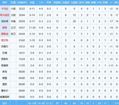 奇才那边,24届榜眼秀萨尔打出生涯之战,出手29次中11球,砍下29分12板3助2断6帽,正负值+16,与克林根(14分20板,正负值-17)对位中更胜一筹。