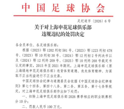 在新一年第一个月的最后几天,中国足坛发生了一件大事。16支中超球队里有9个被罚分,最多的10分,最少的5分,让接下去的2026赛季中超联赛冠军争夺,变得有些微妙。