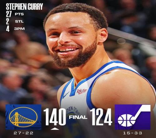 库里27分 勇士8人上双胜爵士