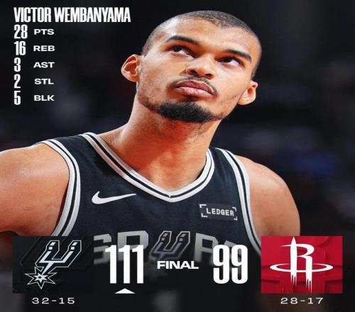 文班28+16杜兰特24分 马刺胜火箭