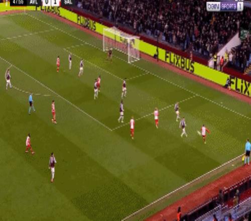 第48分钟,穆萨禁区脚后跟破门,维拉0-2萨尔茨堡红牛