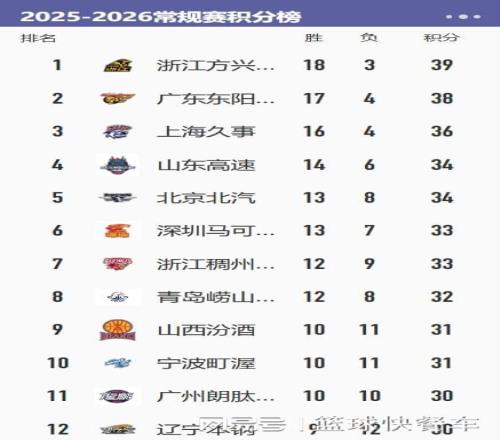 附:CBA积分榜最新排名