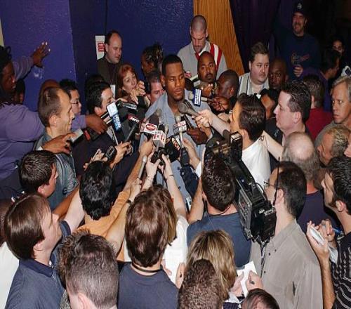 2003年7月8日,NBA夏季联赛,骑士107-80战胜魔术,詹姆斯首次出现在职业比赛,得到14分7篮板6助攻;2003年10月29日,骑士客场挑战国王,詹姆斯迎来NBA生涯的第一场正式比赛,最终他得到25分6篮板9助攻。