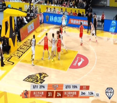 第二节,前半节5分钟浙江持续进攻哑火失误一分不得,广厦塔克、桑普森持续反击得分一波13-0反超7分,节中浙江刘泽一、约翰逊内线艰难拿到6分,但节末2分钟浙江再度哑火,广厦布朗、胡金秋、朱俊龙一波7-0将分差拉大至两位数,半场战罢,广厦35-24浙江。