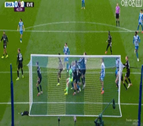 第41分钟,布莱顿角球机会,被判侵犯门将