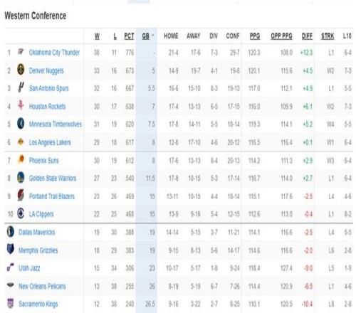西部乱斗!马刺遭爆冷被掘金反超森林狼4连胜稳压湖人火箭第四