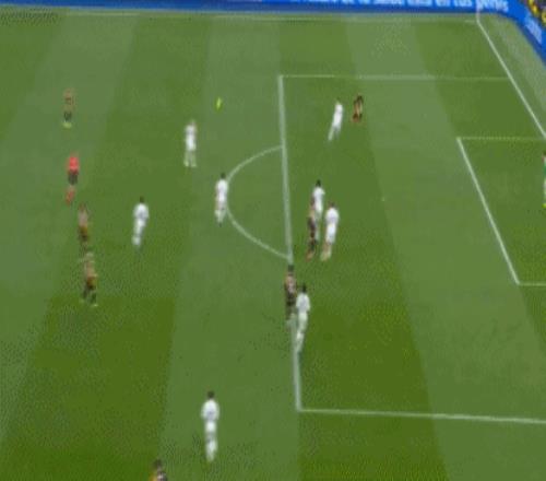 第64分钟,皇马的前场定位球被解围出来,拉蒂乌直杀前场形成单刀,库尔图瓦出击挡出对方的射门。