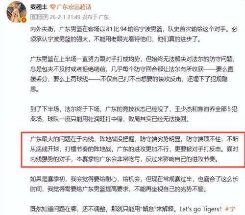 可以说,这位广东媒体人老师说得太直白了,直戳杜锋的肺管子,不愿意面对现实,不愿意承认广东队的问题,更不愿意去解决这个问题,以至于才出现了被人家爆冷的局面。