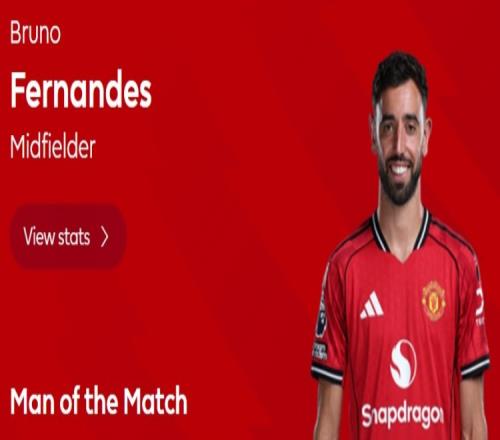 本场比赛B费送出2次助攻,赛后他也当选英超官方球迷票选全场最佳球员。